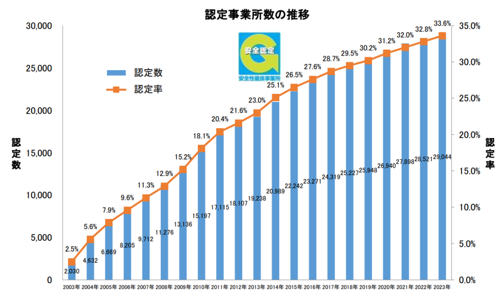 | 事業所数(営業所数) | 33.6% | Gマークの認定事業所数は全体で29,044事業所 | |
