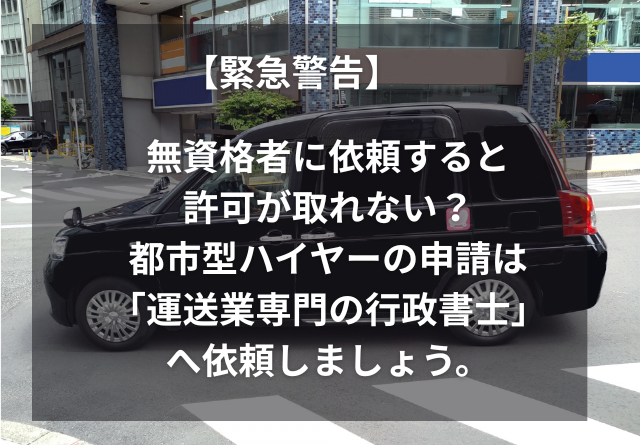 【緊急警告】無資格者に依頼すると許可が取れない?都市型ハイヤーの申請は「運送業専門の行政書士」へ依頼しましょう。