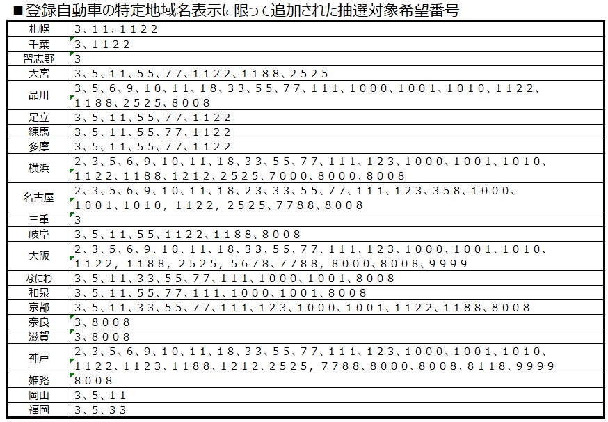 4.既に多くのナンバーが供出されて枯渇している番号もあります