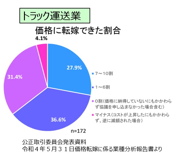 3.価格転嫁の達成状況調査ではトラック運送業が最下位