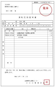 運転記録証明書とは、これまでの運転経歴に関する公的な証明書の1つのことをいいます。ドライバーの保有している普通免許、大型免許、けん引免許などそれぞれの運転免許に対して1年前、3年前、5年前にさかのぼって交通違反や事故による行政処分の履歴を証明する内容となっています。